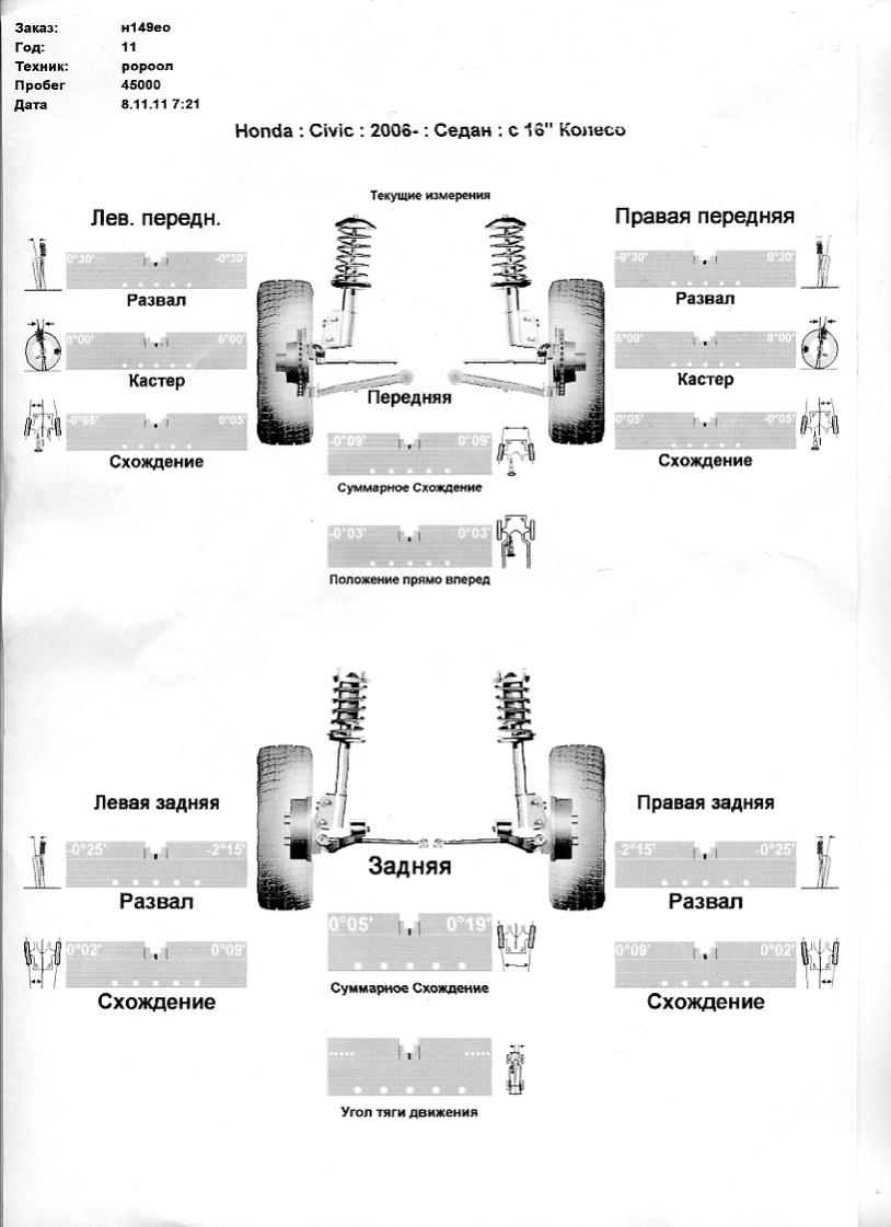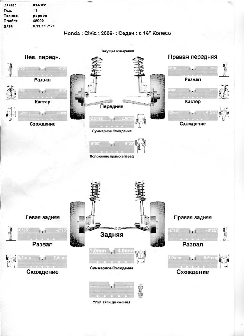 данные по сивику в градусах и минутах чтобы сравнивать данные мануала и распечаток сход развала