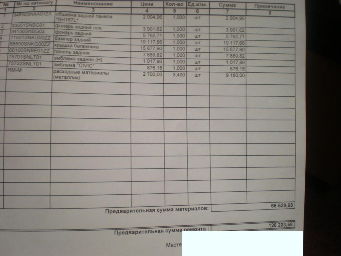Сегодня съездил к дилеру и там по списку, что написал оценщик из страховой в справке, насчитали 126 тысяч включая работы.