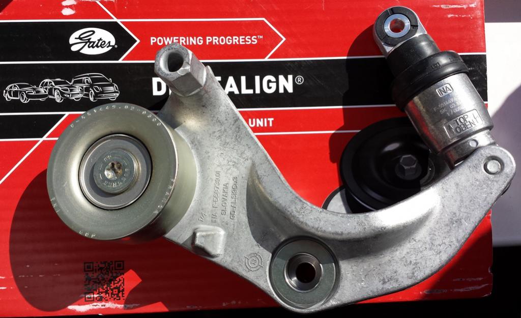 Gates T39077, который стоит 2 100р. К стати родной (потекший) оригинальный натяжитель, оказался от производителя INA SLOVAKIA, а купленный, аналог "Gates", на коробке "Gates T39077", а реально в коробке натяжитель от того же оригинального производителя INA SLOVAKIA, но в два раза дешевле! Рекомендую!