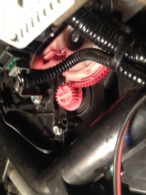 Начал проверять,работу заслонки,по вращению шестерней,в итоге все визуально четко,первое фото,крайнее положенее на горячем и второе крайнее на холодном,и тут я провалился в стопор где косяк,брат говорит иди посмотришь как у меня дует ,у него новая КИшка,ну на ней я скажу поток воздуха просто ураган,и по звуку все слышно ,распределение идет по центру,ну мне тут в голову вдарило и я пошел снимать магнитолу)))