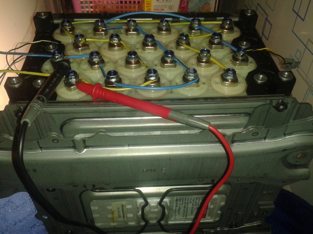 Приветствую всех! Хочу поделиться своим опытом в прокачке своей ВВБ. Батарея стала вести себя не стабильно разряжалась беспорядочно и заряжалась также. Не стал затягивать с проблемой, решил разобрать ВВБ. Снял с машины и принес её домой. Разобрал её частично до контактов ,бамбуки не снимал. Замерил напряжения на парах, на всех парах кроме одной показывало 16,3 v и только на одной 16 v . Разрядил её лампочкой 12 v 20 вт ушло на это 30 минут , разряжал до 12 v . Остальные пары разряжались ровно по 3 часа. Просевшую пару затем зарядил заряд ником от ноутбука 20 v 3.5 а ушло 8 часов до придела 17 вольт, затем снова разрядил лампочкой до 12 вольт. Когда все пары были отдельно разряжены я их запаралелил и еще раз разрядил 2 лампами по 20 ват до 12 вольт. Затем разряженную батарею собрал и установил в машину. Двигатель запустился со стартера и пошла зарядка на ВВБ до 3 делений, перевел ручку в режим l и зарядил батарею полностью , на зарядку ушло 30 минут. Батарея стала работать стабильно !