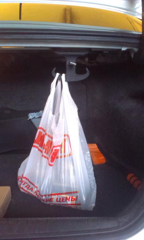 Таким образом оптимизация моего багажника завершена: огнетушитель и всякая мелочь в небольшой сумке на липучках, пакеты тоже теперь есть куда подвесить.![]()