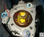 Заклепка ремня из пластика? Если да ,то я бы снял в идеале обшивку и заклепочником через подходящие шайбы приклепал ремешок к обшивке потом закрасил черным. Это насмерть.