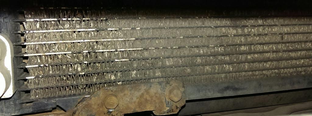 Вот радиатор кондея после 130тыс и 4 года эксплуатации, пол года назад я его мыл (в сервисе, с разбором), но он уже успел забиться.(у меня нет сетки)