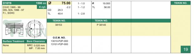 это таблица поршней каталога Тейкин teikin.com