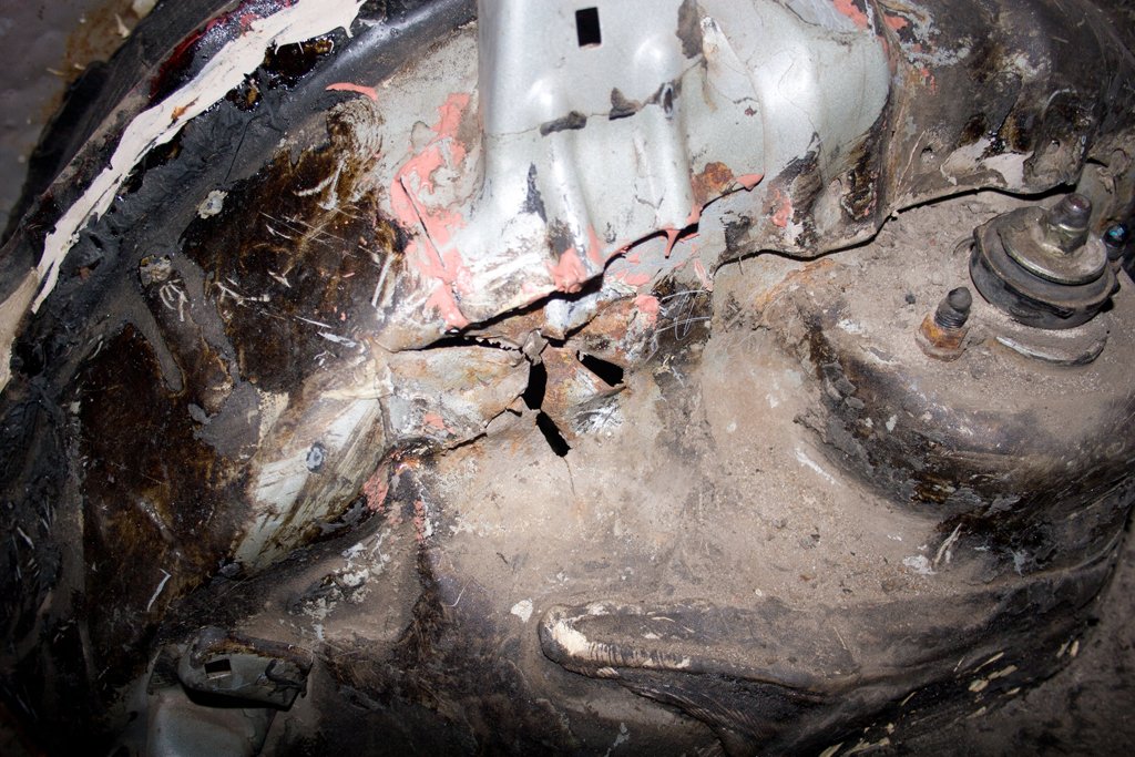 Сегодня снял часть изоляции с арки,нашёл трещину,и пару дырок ,но не от ржавчины) Они рваные.Над амортизатором точки не приварены,и оттуда вигачила грязь и песок.А я то думал как она там оказалась.Приваривать не буду,потом туда не залезешь чтоб обработать,поставлю на болты и защитную пластину снаружи,всё на смоле и прогрею.