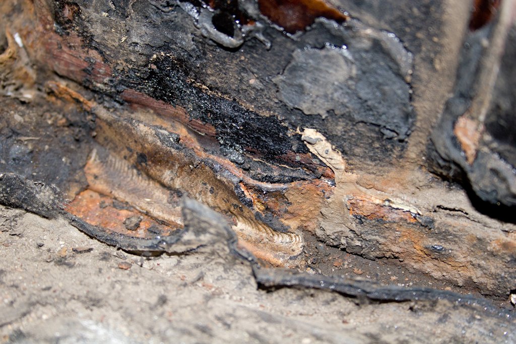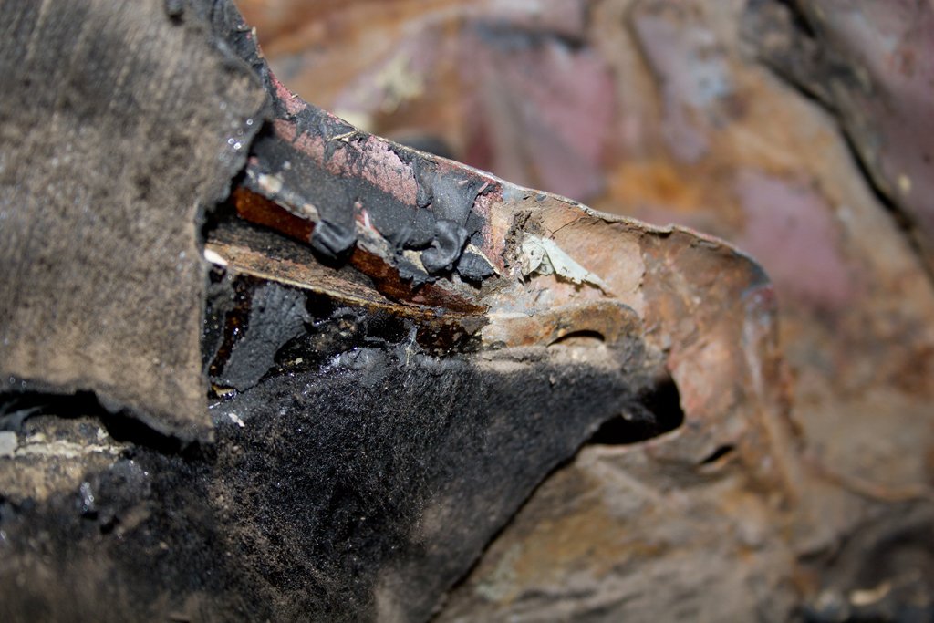 Ещё немного мест под зачистку крупным планом и ошмётки изоляции,отдирать довольно трудно,а если прогревать то весь в смоле будешь.