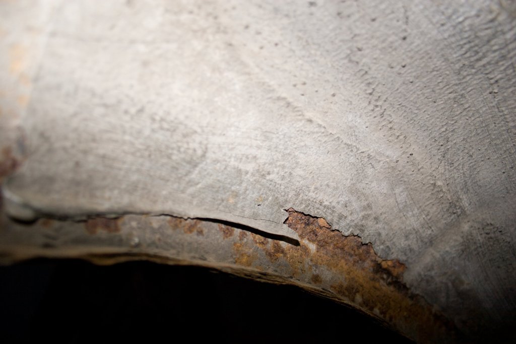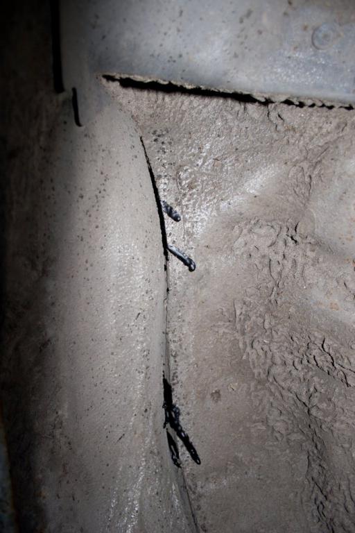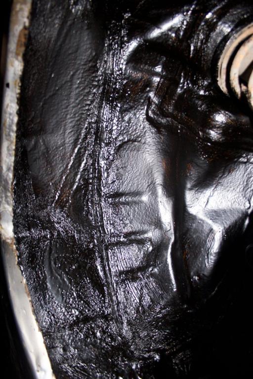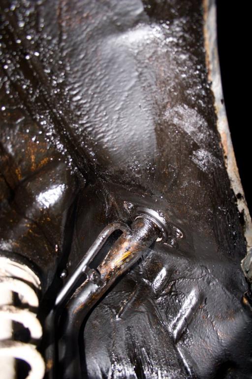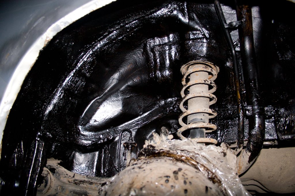Вот ещё фото на которой видно как сквозь щели в арке ,то что я вчера мазал из салона прошла смесь.И то как работает защита типа мовиля или антигравия .При засыхании ,через некоторое время она растрескивается и хоть снаружи выглядит всё хорошо ,под ней уже ржавчина.