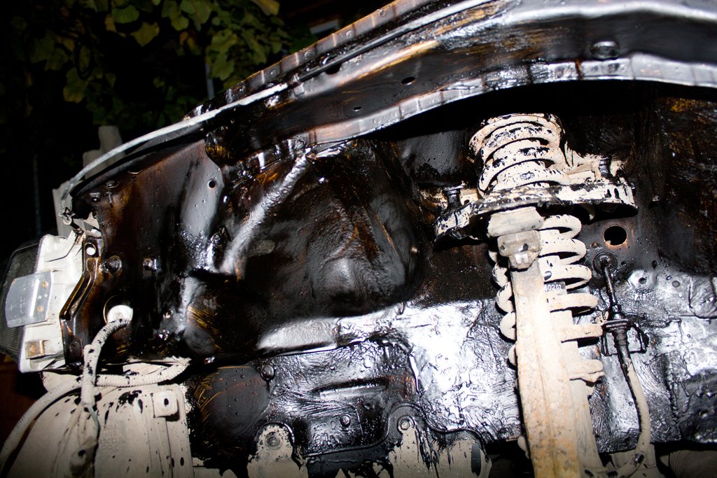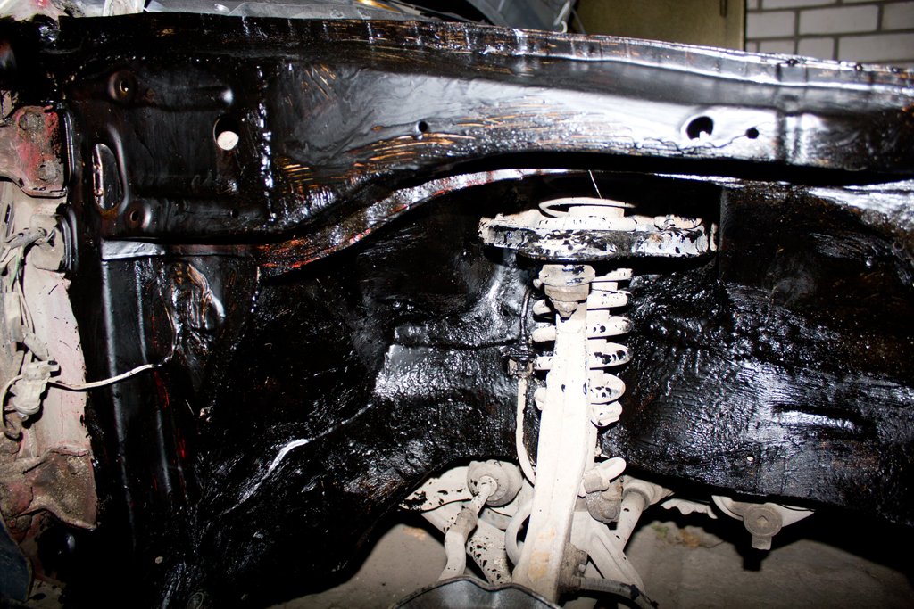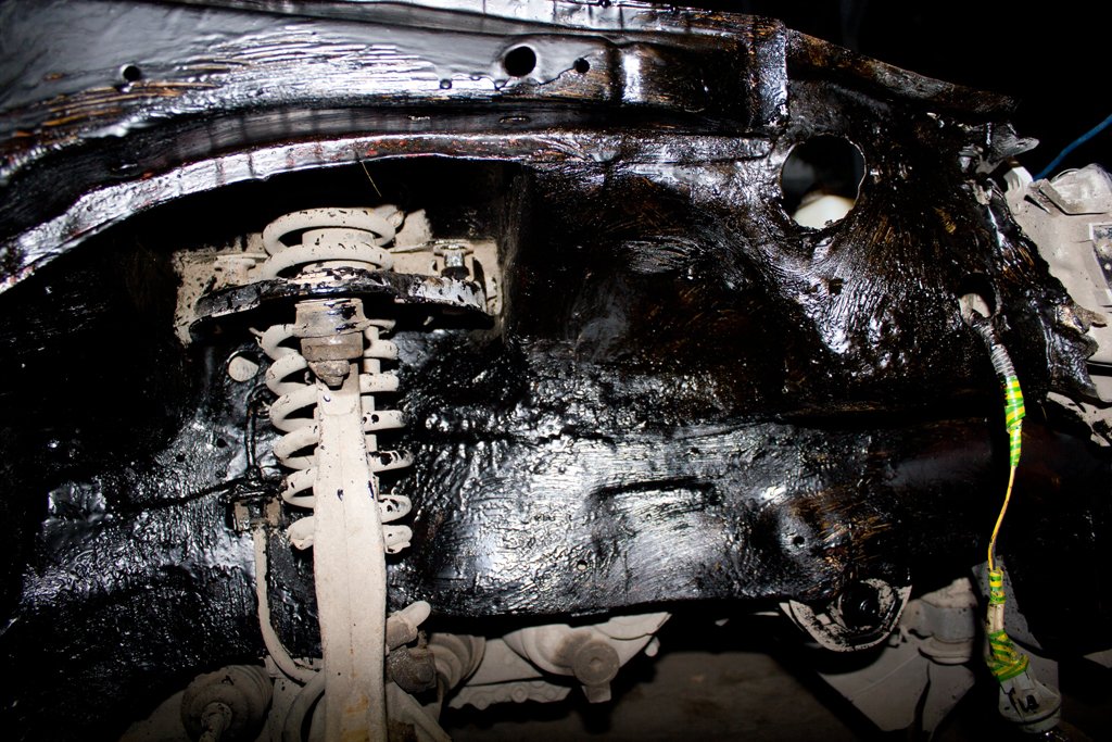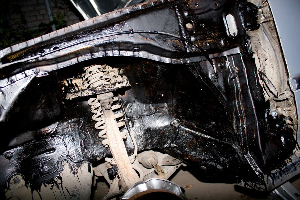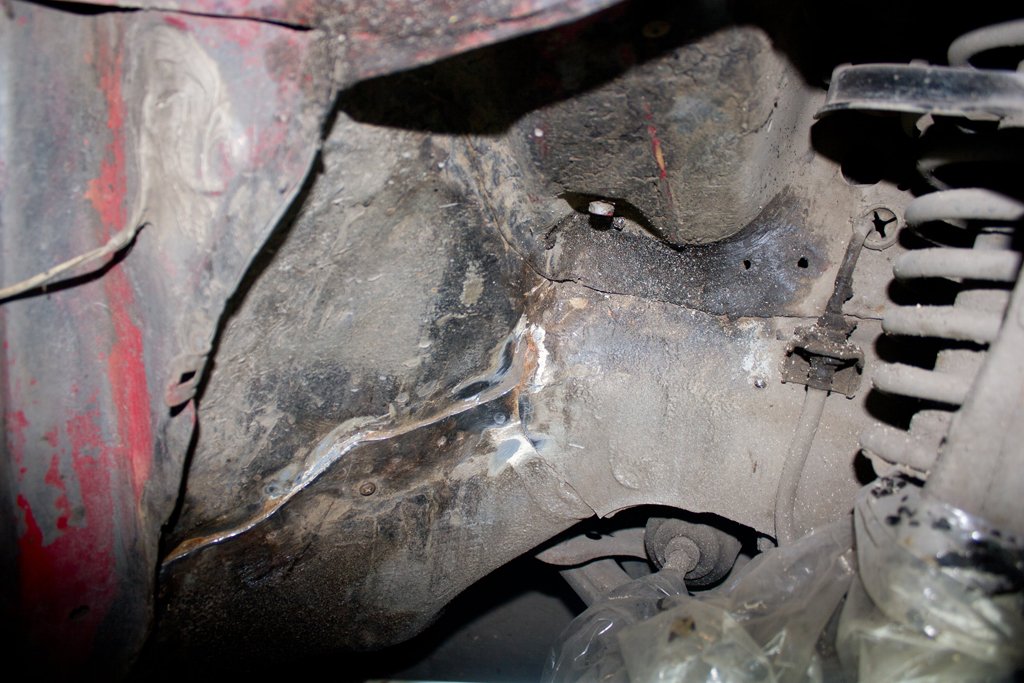 Сегодня зачистил и частично сточил швы, замазал передние лонжероны и арки.На фото до нанесения смолы видна щель между нижней частью и аркой.Там есть целые точки,хотя может и кажется,весной проварю когда буду пол зачищать спереди.Если варить так ,загорится то что в салоне близко.Я её всю вычистил от старой шпатлёвки и герметика,ржавчину зачистил,просто забыл фото сделать,некогда было.