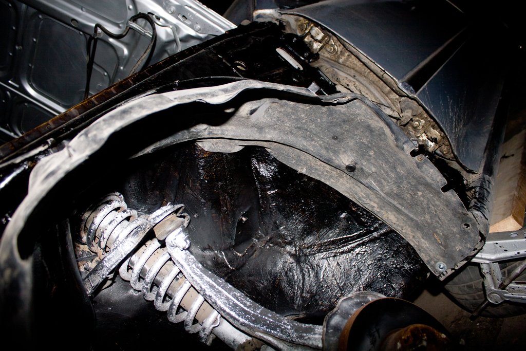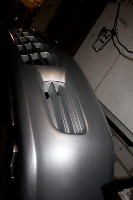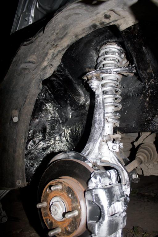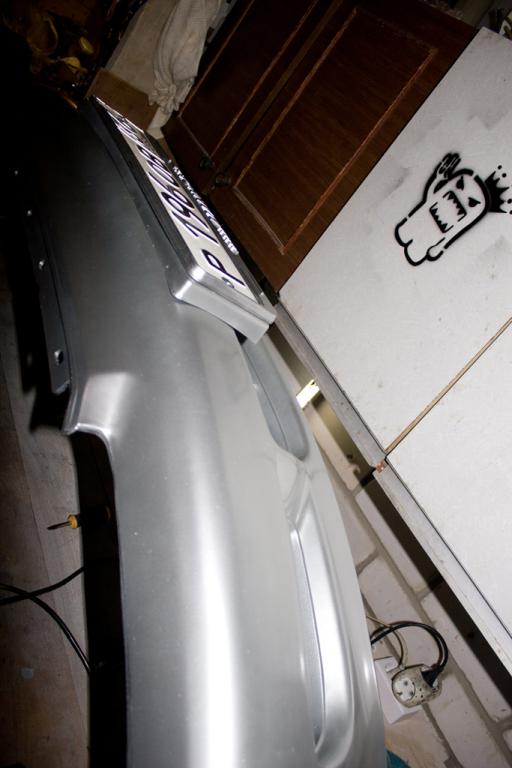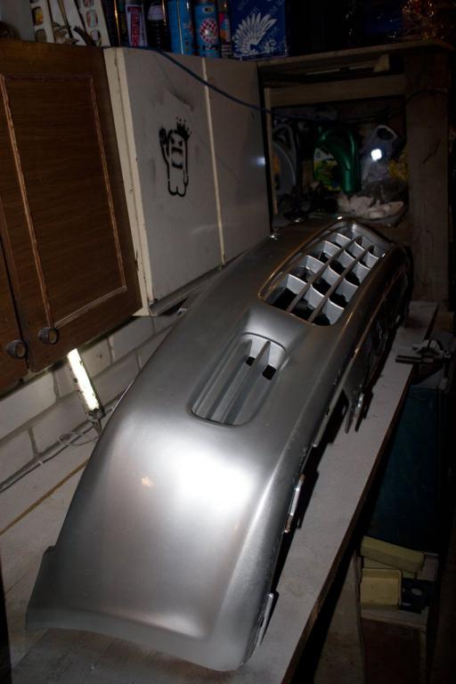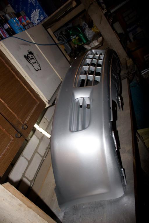 Закрепил подкрылки по нормальному ,клипсами в штатные места.Шлифанул задиры и ржавь с колёсных болтов.Неиспользуемые отверстия тоже заткнул клипсами.Осталось закрыть два больших круглых 25мм,нет заглушек.Для развлечения покрасил рычаги с пружинами и суппорта.Покрасил бампер передний с номерной площадкой.Грунта для пластика не нашёл вблизи ,сначала прошёлся краской эмалью для пластика вместо грунта,потом базу и лак.Получилось хорошо.Естественно всё мыл и обезжиривал .Так как антисиликона-антистатика у меня не было,просто изнутри бампера пару раз хорошо прошёлся обычным антистатиком ,сначала и перед покраской,потом снаружи на всякий случай ещё прошёлся обезжиривателем.Пару царапин и задиры снизу особо не затирал.