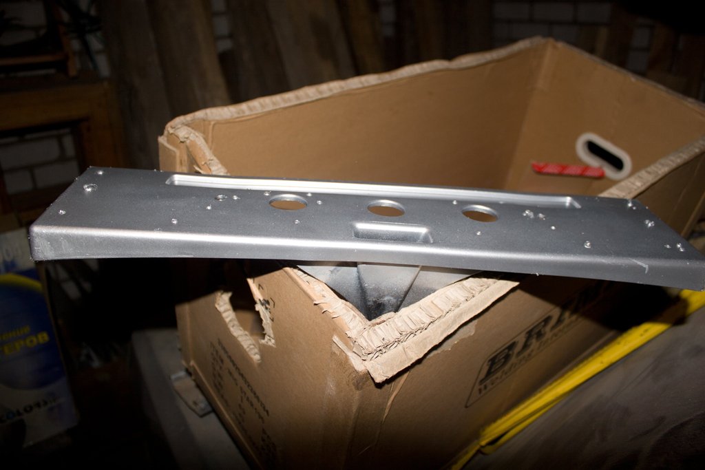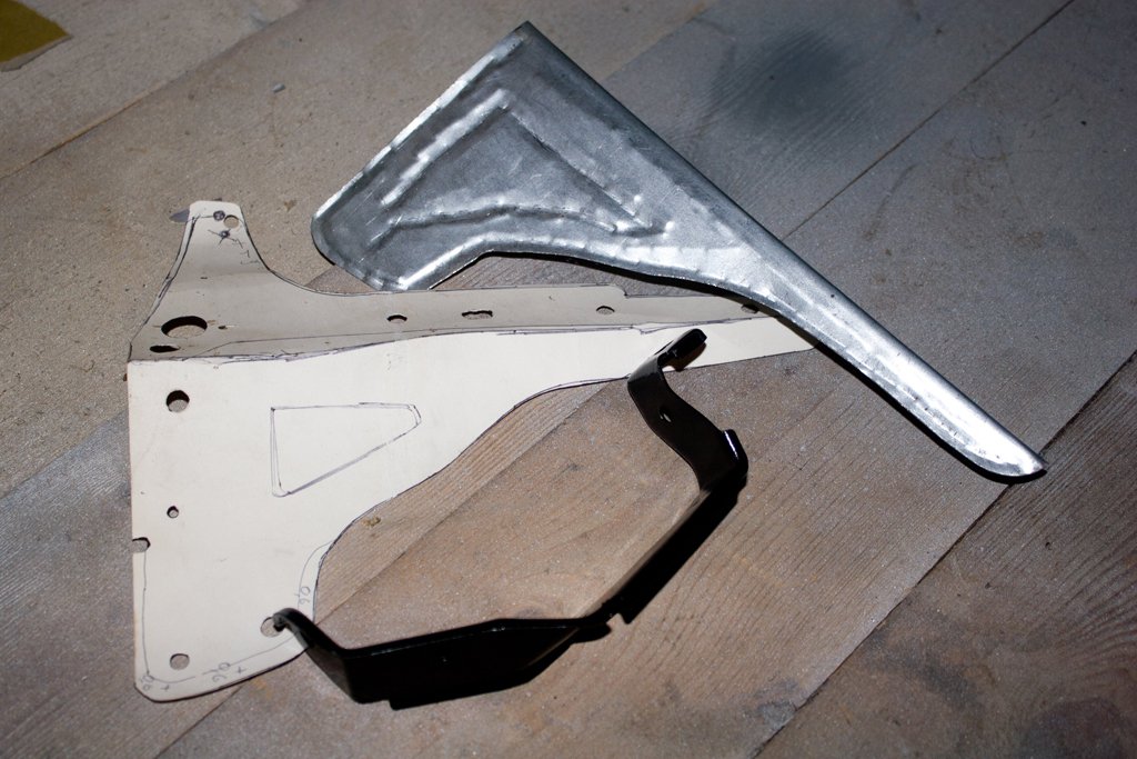 Вырезал из толстой оцинковки упор для бампера и крыла,добавил рёбер жёсткости,вроде нормально.Завтра поставлю.Покрасил поставил на место упор на левую сторону.
