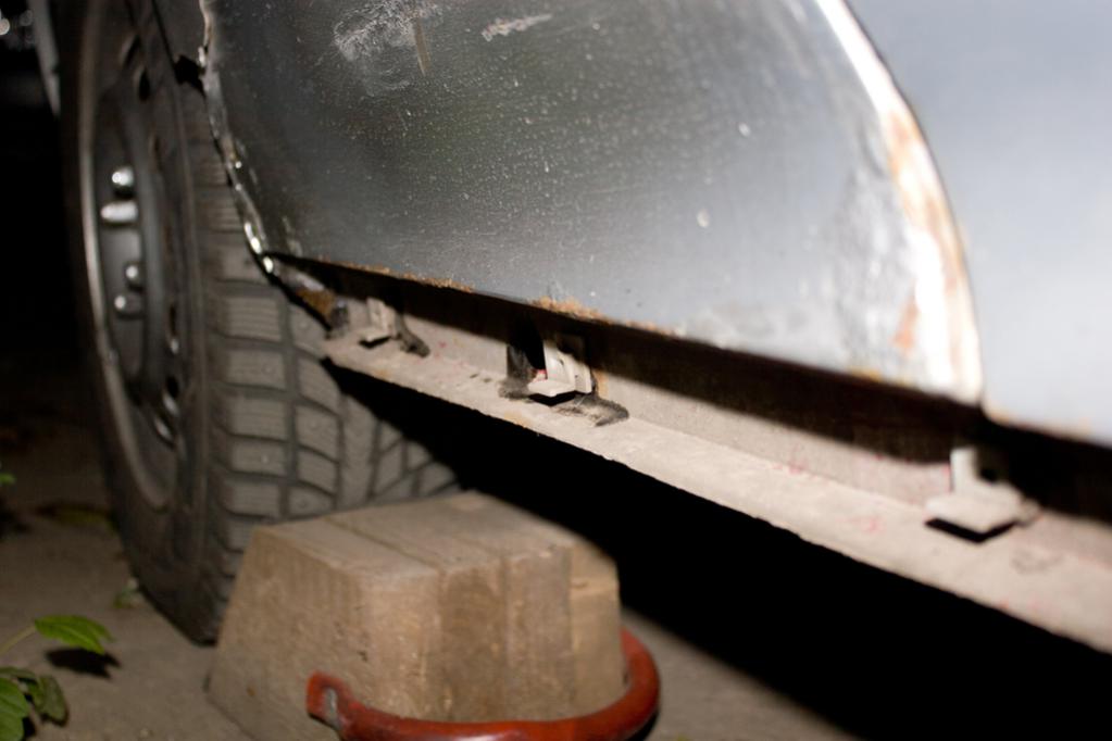 Снял накладки с порогов.Отмыл.Пороги в нормальном состоянии,чуть есть ржа кое где ,но не дырок сквозных ни сильной коррозии нет.На фото видно ,что смесь ,которую я из салона мазал прошла и в пороги.Буду зачищать и промазывать снаружи и делать жидкую смесь чтоб загнать внутрь порогов.