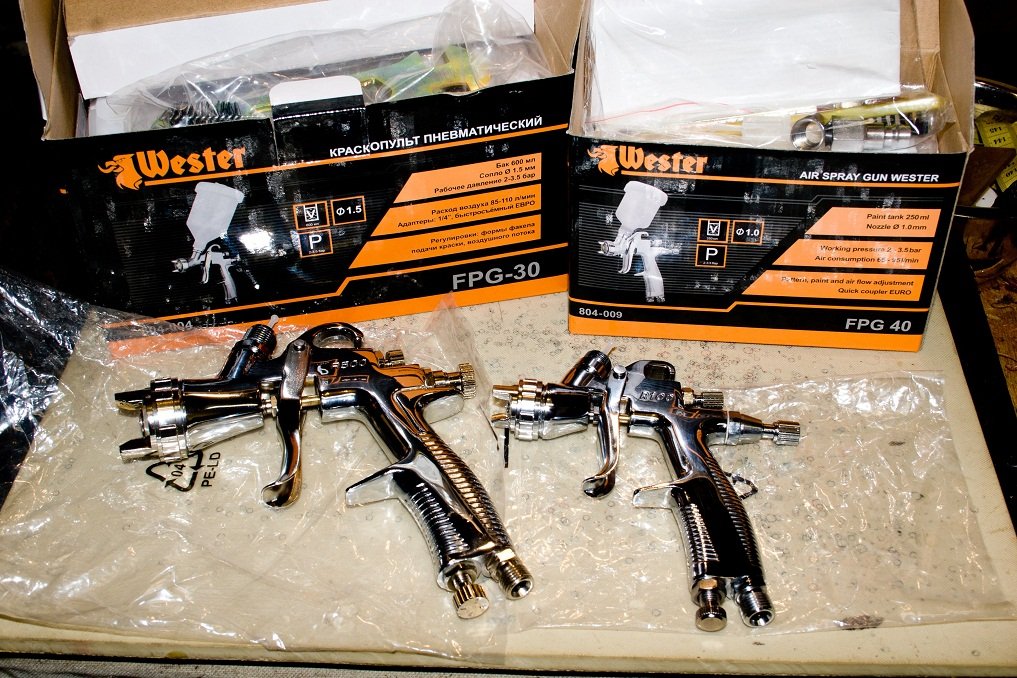 Прикупил пару инструментов,и мелочей.Приехала посылка от ROMA ,со стойками,поворотниками(у меня нормальные,просто правый внутри ,чуть облез внизу) и деталями по салону(а то у меня часть сгорела) .И купил наконец краскопульты LVLP)Фотка ворот для maks_PERM, ))