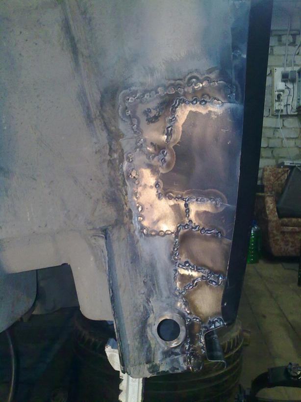 Место где они соприкасаются сварено точечно и четко подогнать подкрылок под арку да еще потом заварить чтобы было не видно это наврено что-то из "звездных войн"...