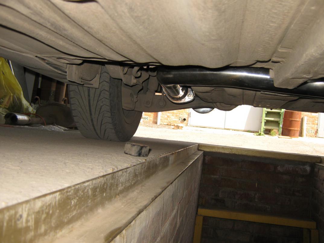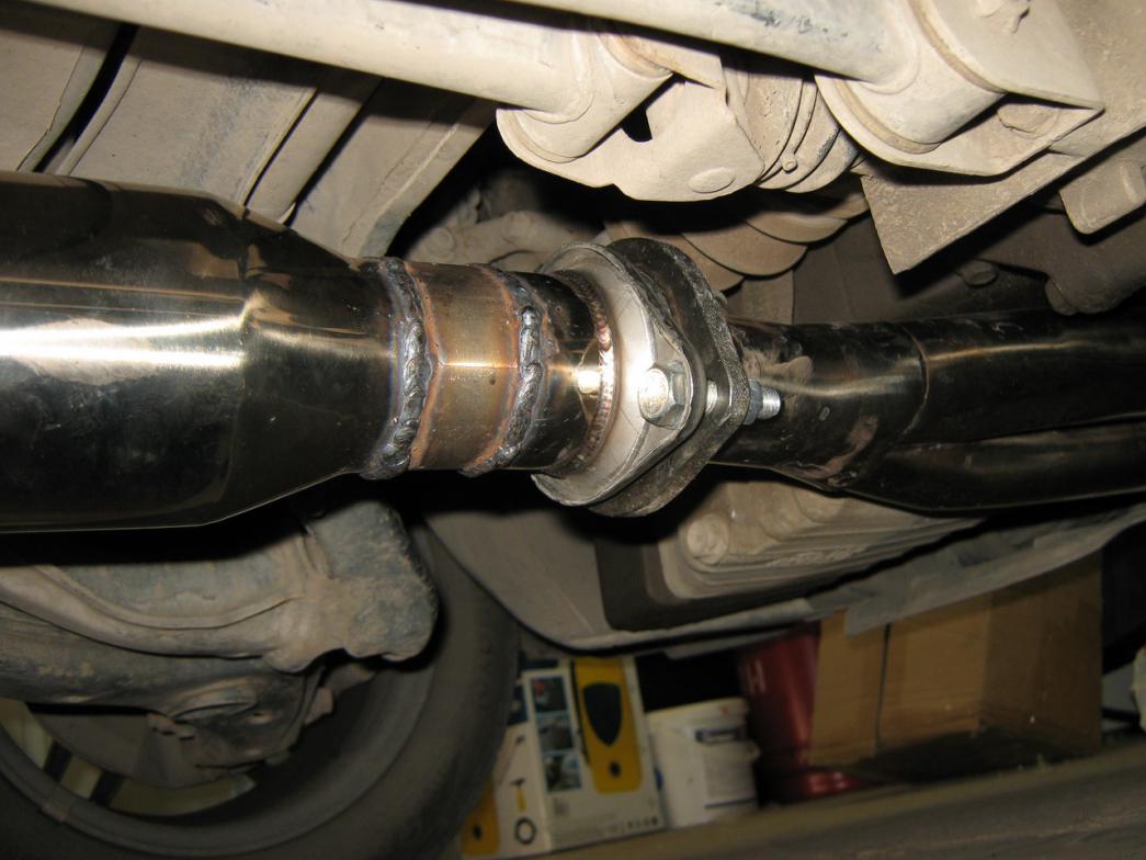 Поставил !. Пришлось повозится, приварили ровно фланец на (изгибе) который к банке, повесили банку выровняли высоту трубы банки над стабом и прихватили, также что бы другая часть изгиба была примерно ровно в тоннеле, с резонатора отрезали лишнею палку держателя для подвеса, не знаю для чего их две, на сивке в стоке одна, поехал потом к другому знакомому гнуть коллектор, снял нижнею его часть, нагрели чуть дальше изгиба, веса в 85кг не хватило его согнуть, пришел лом на помощь, согнулся он там где грели и на самом изгибе двух труб, согнули примерно на глаз, прикрутил его а глаз то алмаз. Соединить все не хватило примерно 33мм пригодилась заранее купленная труба нержавейка 60мм, в варили кусок в пламик, так как подвес средней части совпал четко, пришлось разрезать пламик.