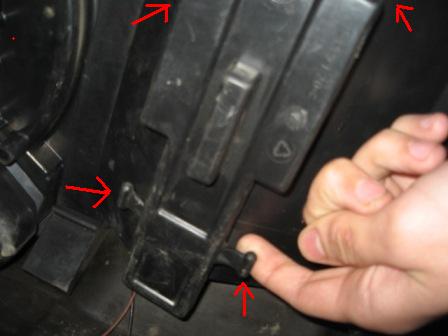 И снимаем крышку полностью...тянем вниз... кидаем её куда-нить подальше(мне проблематично полностью снять - лампа мешает..её снимать вломы ради фоток...), засовываем салонный фильтр, ставим назад крышку и готово.
