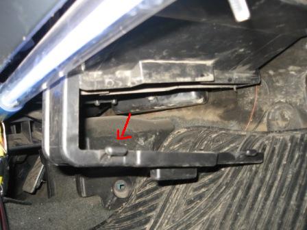 На фотке показаны эти самые защёлки, чтобы до них добраться тебе просто нужно заглянуть под бардачок.