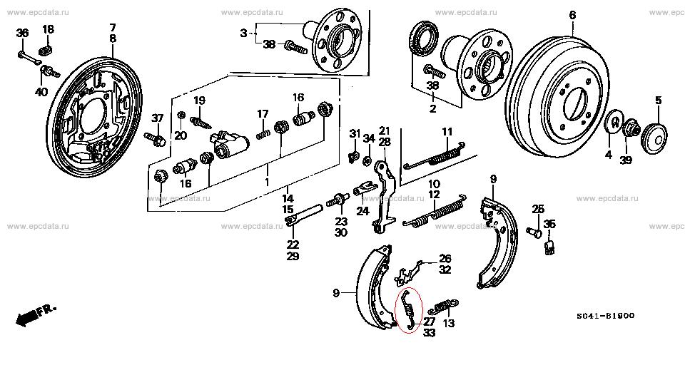 всем привет !! вопрос задних тормозов возник - у меня отсутствует регулятор зазора задних колодок (барабаны) приобрел их, но пружина стоит очень дорого (200р одна с ожиданием 2 недели или ремкомплект задних тормозов 600р). вопрос вот в чем может с чего нибудь пружина подойдет никто не сталкивался (27я позиция на рисунке)?