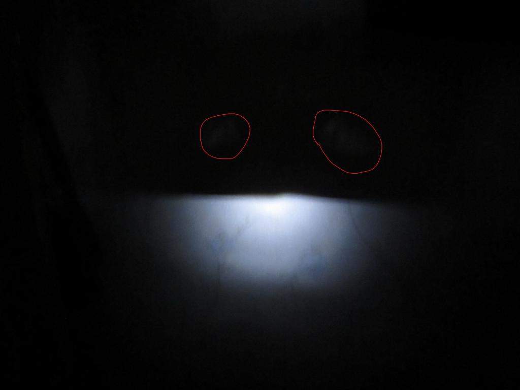 Уже другая линза, голая без масок и всего. принцип такой же фонарик сзади. Четко видны засветы. Конечно если мощность света увеличить, то засветы значительно возрастут. Где их блин искать???