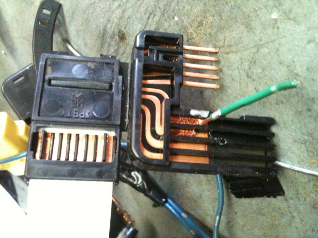 Разобрал по новой, прозваниваю желтый разъем и шлейф показывает короткое замыкание, все подчистил где могло коротить, да еще и провод от желтого разъема со стороны жгута оборвался (смотри фото), пришлось припаивать и его еще, все собрал, сразу стал скидывать ошибку, скинул и после 2х миганий лампочка потухла (раньше горела). Выключил зажигание на 10 секунд, включаю горит и не тухнет.