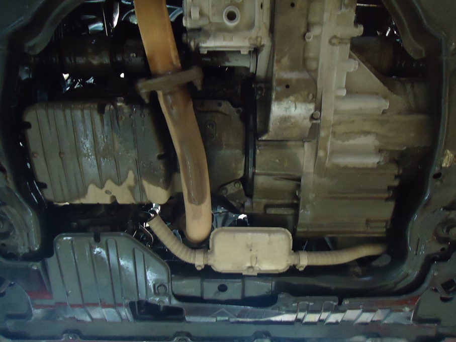 - И , на моём авто установлен ГИДРОНИК . Который нагревает ОЖ и как вы видите на фото выпускная система гидроника (которая также мешает смене фильтра без демонтажа) подогревает масло в поддоне картера двигателя во время его работы.