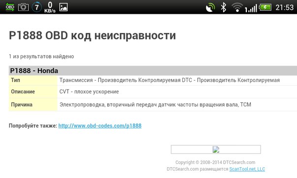 а на днях вылезла ошибка замигала D, появился тупняк в работе коробки, подключил сканер считал ошибку, вылезла ошибка P1888 CVT Speed Sensor.