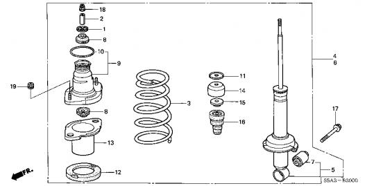 Сам буду менять задние на днях. Тоже жопу подбрасывает. Но на моих уже подтёки есть. Может сервисмэны твои не внимательно смотрели? Ты сам свои стойки на подъёмнике разглядывал? У меня артикул задних тот-же что и у тебя, а подойдут-ли на седан - не знаю, но скорее всего что подойдут. Ещё я купил, по указанию своего мастера, пыльники и отбойники. На твоей картинке это №13 и №16 По-моему они только оригинальные бывают.