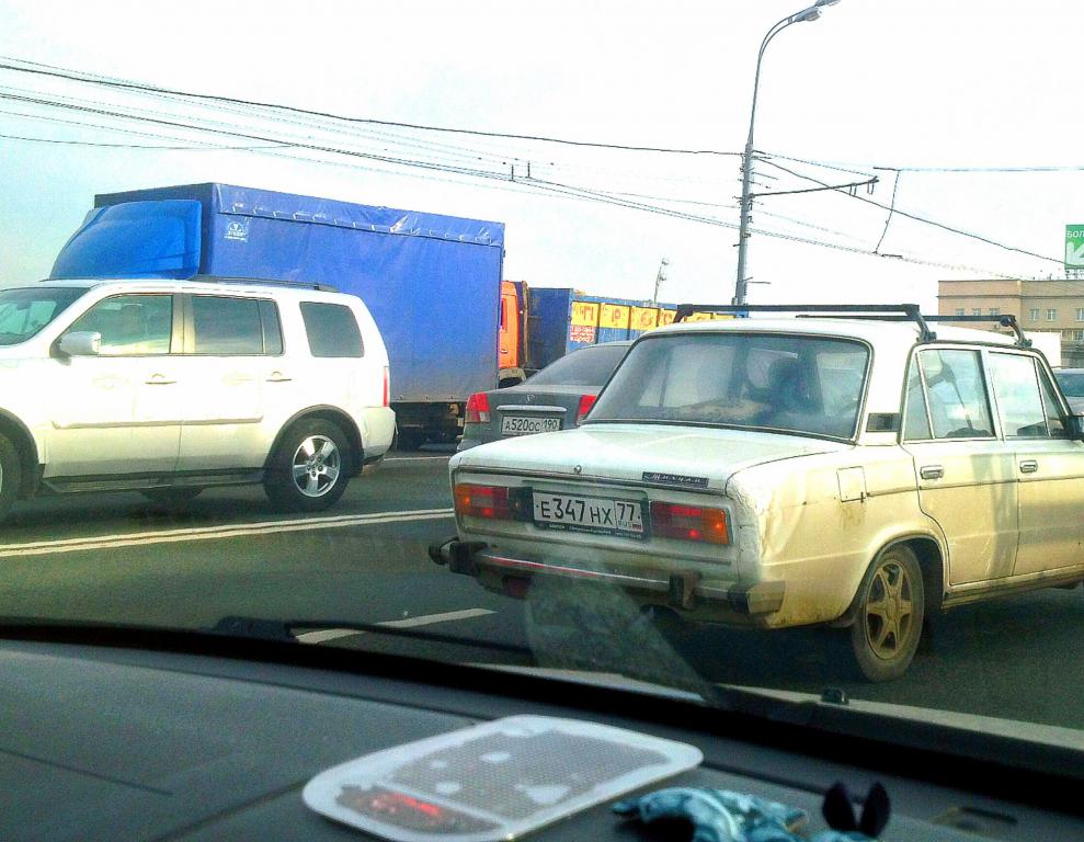 Вчера вечерком видел красное купе с девушкой за рулем на ТТК, а сегодня утречком пенсионера на золотисто-зеленом рестайле... На фото он самый крайний во встречном направлении... Хотел подождать пока иссякнет поток пешеходов, но тут в кадр влез мерин...