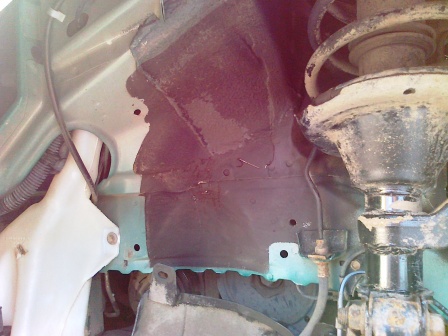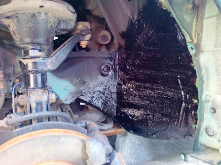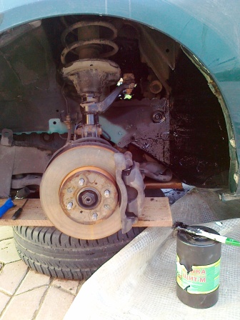 На второй фотке старое покрытие отмытое пеной для "Керхера" и щеткой. Нет фотки конечного результата, но арку всю замазал,всё черное. Под подкрылком тоже промазал.