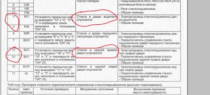 Друзья, у меня такая проблема. Кнопки на водительством стеклоподъемнике были почемуто перепутаны. auto не работает, кнопка задней правой двери открывает водительскую, остальные кнопки открывают нужные двери. ну и конечно заднюю правое стекло с водительского места я не могу открыть. Как сделать чтобы все вернулось на места? Нашел в книге такую таблицу для диагностики. И думаю чтобы вернуть все обратно нужно поменять местами провода 4,3(водительская) на 10,12(задняя правая). Так?