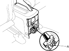 Далее нужно поднять рычаг стояночного тормоза на 1 щелчок, и регулировать гайкой А на тросе (в лючке сзади консоли с рычагом, см. рисунок).