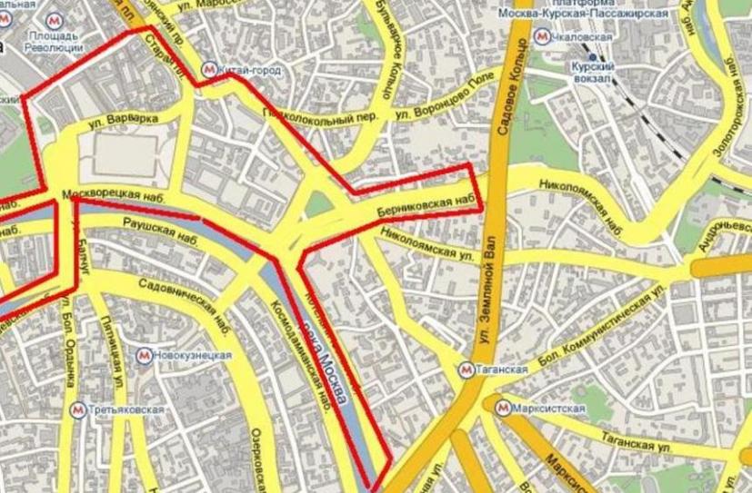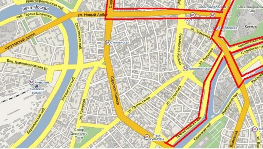Посмотрим варианты изменения маршрута у Пречистенской наб.... Объехать всегда можна