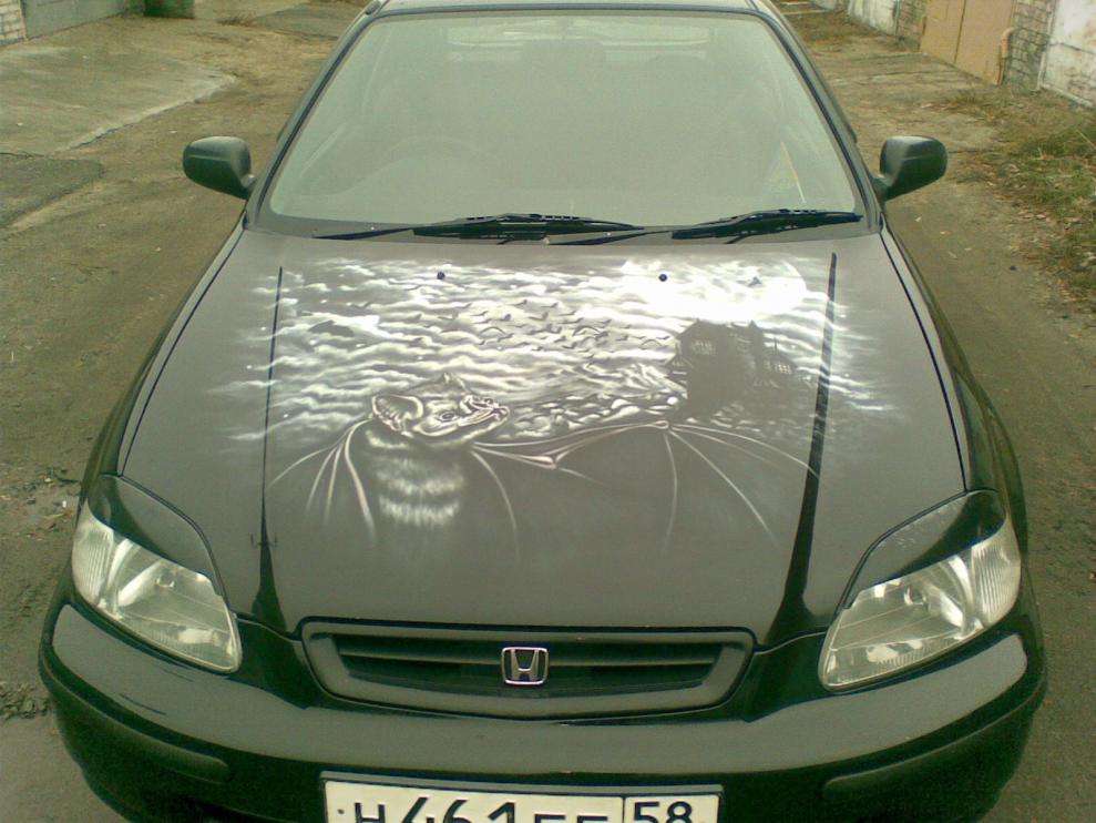 У моего друга на Rover 200 тоже на капоте аэрография и тоже с подписью ))).