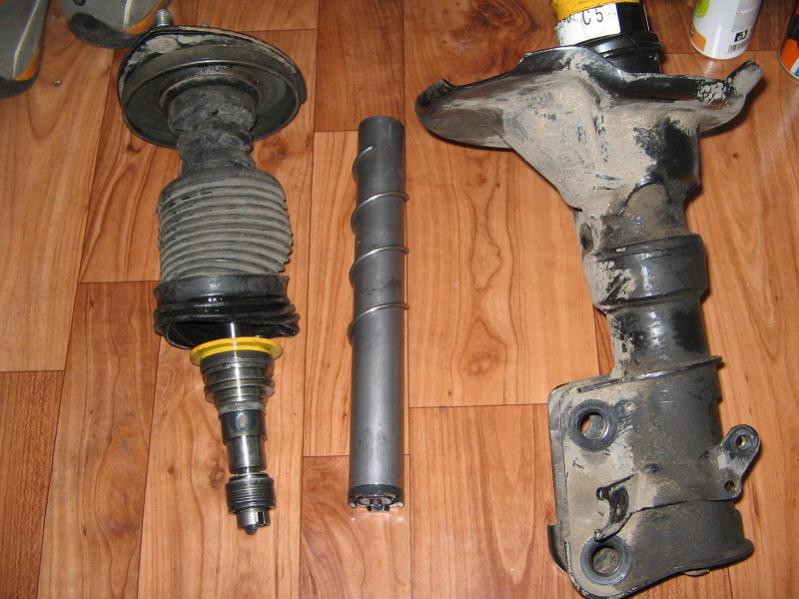попал в аварию и пришел конец левому коню, масло выбежало, корпус оригинальной стойки разогнулся и картридж в нем болтаться стал как ...уй в проруби, щас поставил себе каябу