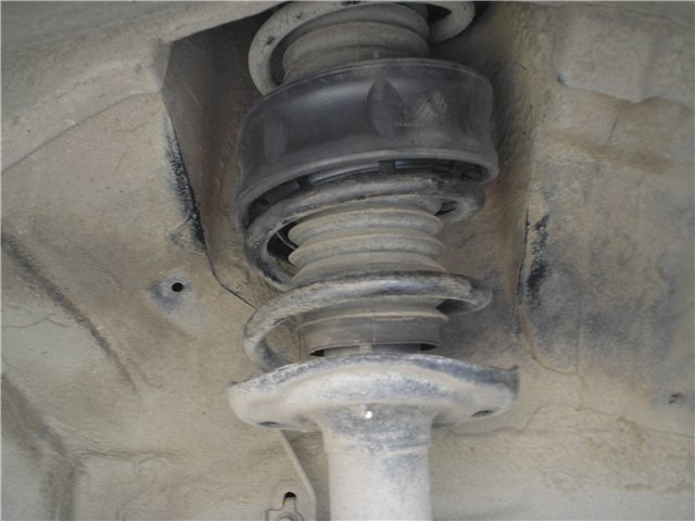 На фотке видно где пружина стоит,что тебя интересует.А пробоев нет просто ты катаешься по хорошим дорогам ,так оно и должно быть так.А пружины у всех бракованные.