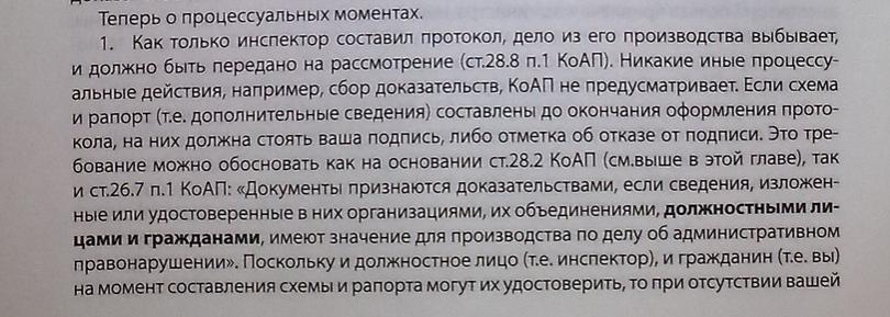 " Инспектор не имеет права представлять какие-либо доказательства помимо протокола, как не имеют такого права и его начальники" - это что ещё за сказки?