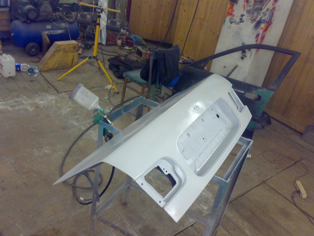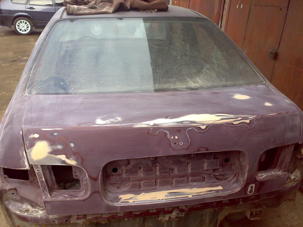 переварен багажник,частично стакан,вся старая шумка снята(салон включая торпеду,оббивки и так далее тоже)по мотору снята проводка,впуск,выпуск,кузов зашкурен полностью,под шпаклю,грунт,скоро начнём варить подкрылки,ремкомплекты арок а затем пороги