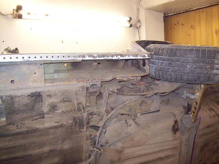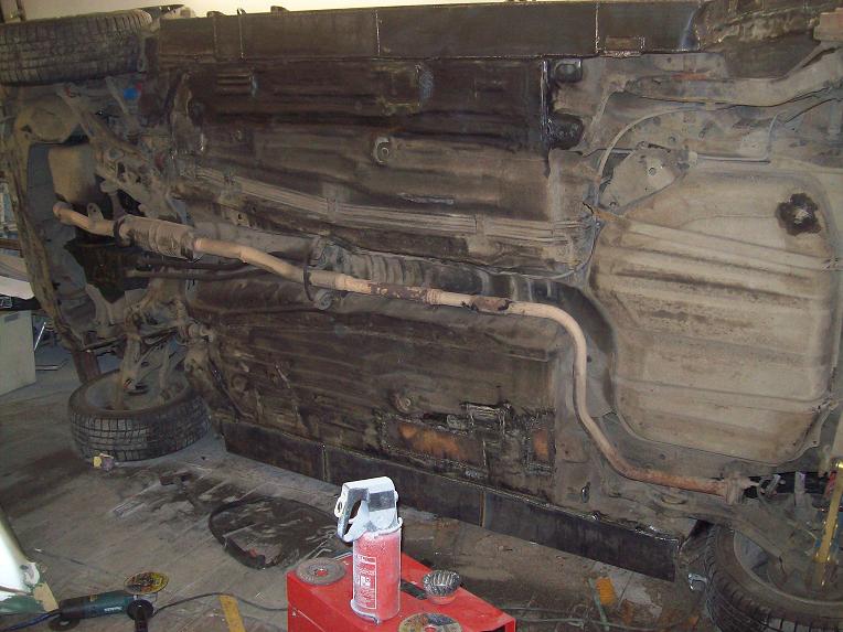 Затем перевернул машину, выркзал остатки родных порогов со стороны пола( снизу) ну и закрыл все листом тоже 1.5мм
