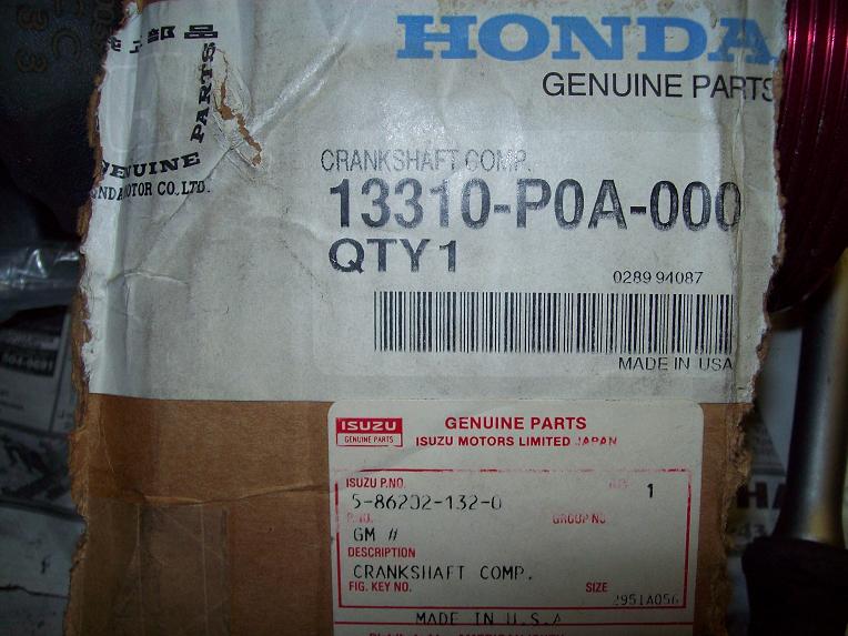 Коленвал- Хондапартс МАДЕ ИН УСА))) первый раз видел сине белую наклейку оригинала. оказалось просто америка))