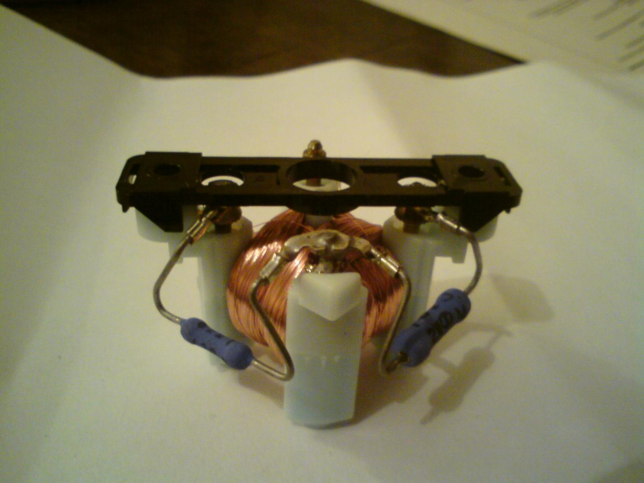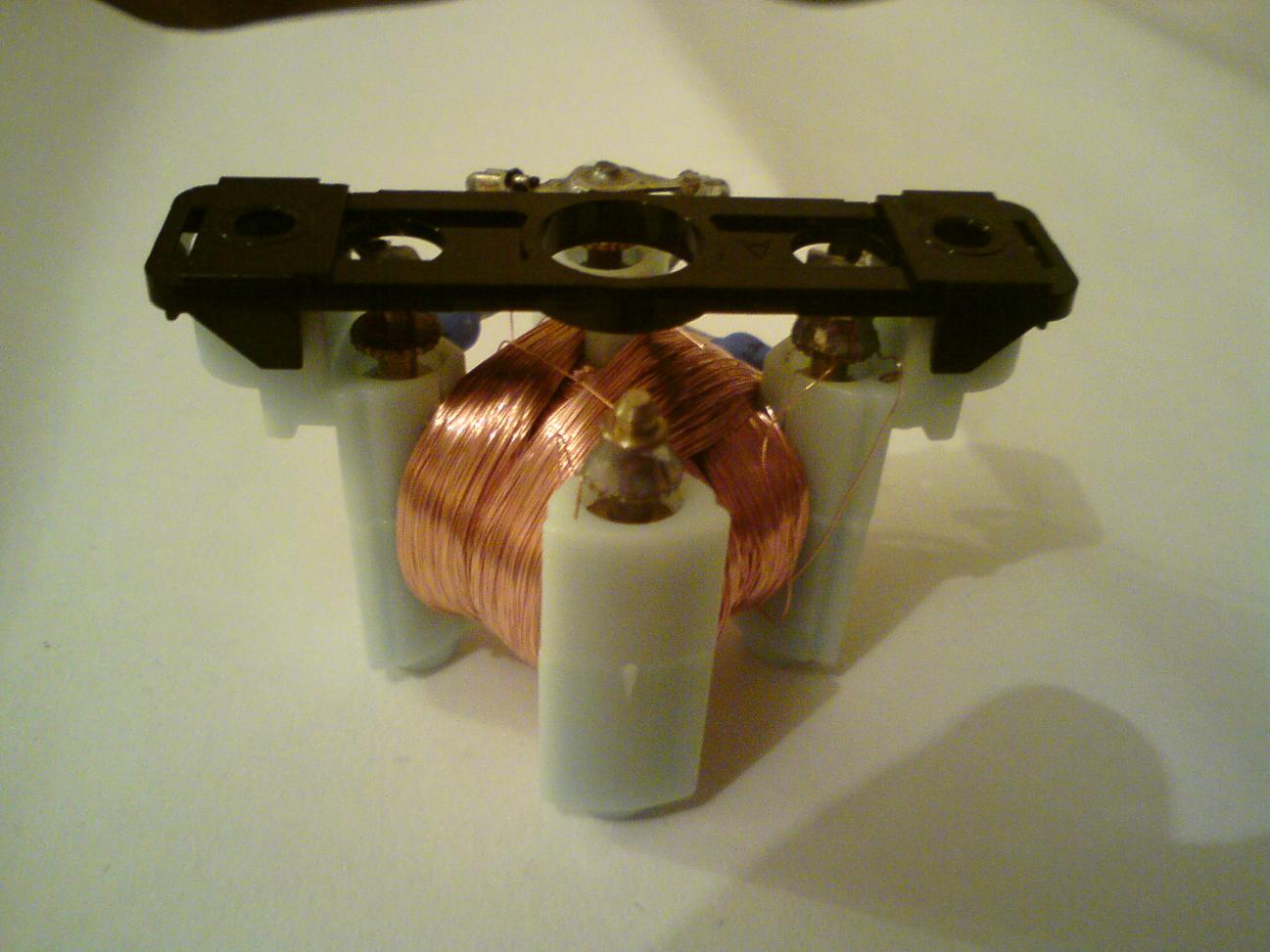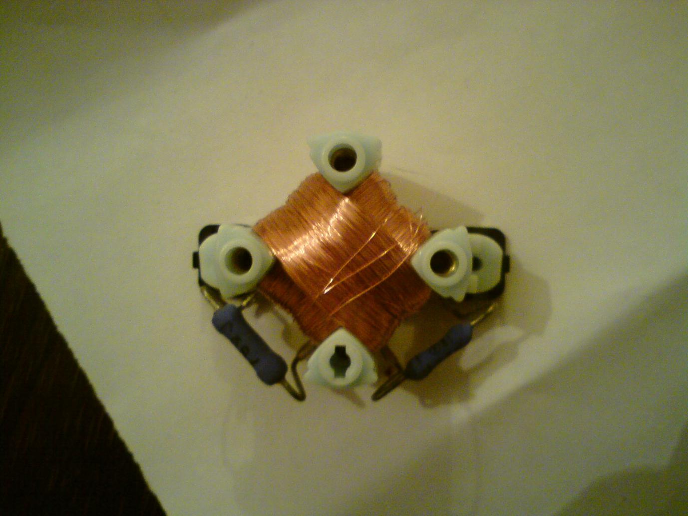 Проверь провода на катушке, идущие к контакам, т.е. к штырям. У меня один был оборван, "-" по плате, что в районе оси стрелки. Аккуратно подергай проводки у ножек (где оба резистора сходятся, нет проводов). Если найдешь оборванный, нарасти пайкой и приделай к соответствующей ножке. Там провода очень тонкие, соответственно требуется аккуратная пайка тонким жалом. Будешь паять, подложи хотя бы кусочек бумажки, чтоб остальные не задеть и в ножку корпуса не вплавить провод.