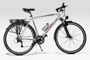 Уникальная алюминиевая рама разработки Эдди Меркс (Eddy Merckx) специально для Honda. Передняя амортизационная вилка. Алюминивые тормозные диски "Aero", шины Continental. Механизм переключения скоростей Shimano Deore, 27-скоростей. Размер рамы 55 см.