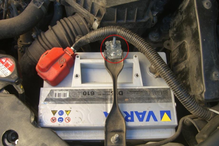 Отгибаеме металический хомут который удерживает силовой провод "+" (при необходимости)