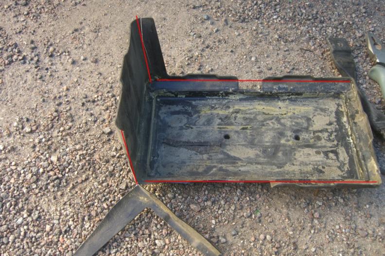 Пластиковый поддон подравниваем под новую АКБ (убираем бортики).