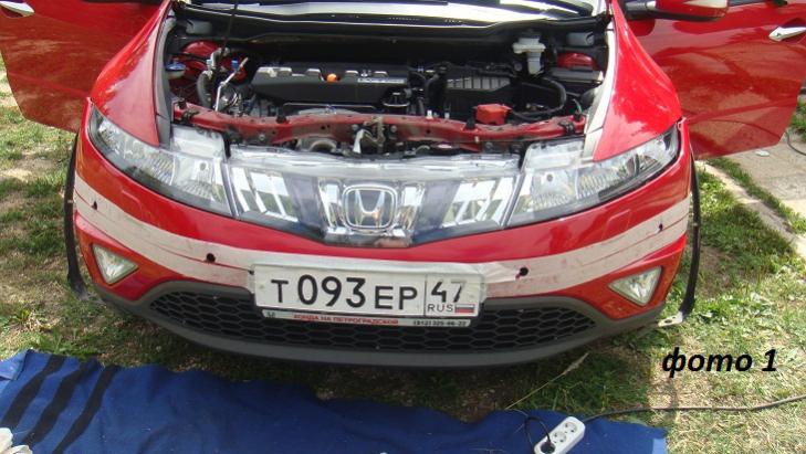 итак, первое: для начала, снимите и открутите у переднего бампера всё что откручивается снизу и сбоку. аккуратно отсоедините боковые декоративные накладки в арках. думаю вы всё это сможете сделать на интуитивном уровне! не спеша, потихоньку смещая туда-сюда детали и ощупывая возможные места креплений. это не сложно!