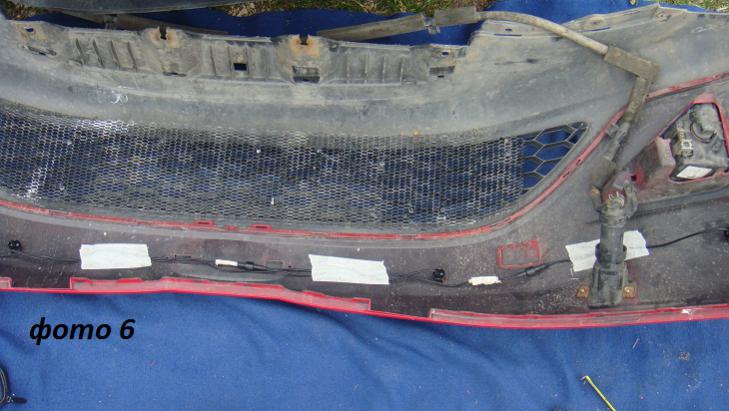 четвёртое: вставляем датчики в свои дырки, подсоединяем разъёмы. и прокладываем внутри бампера, как на фото 6. в месте их встречи всех четырёх, начинаем жгутовать изолентой. гофру я не рискнул делать из-за его объёма. проще и меньше - изолентой в один жгут.
