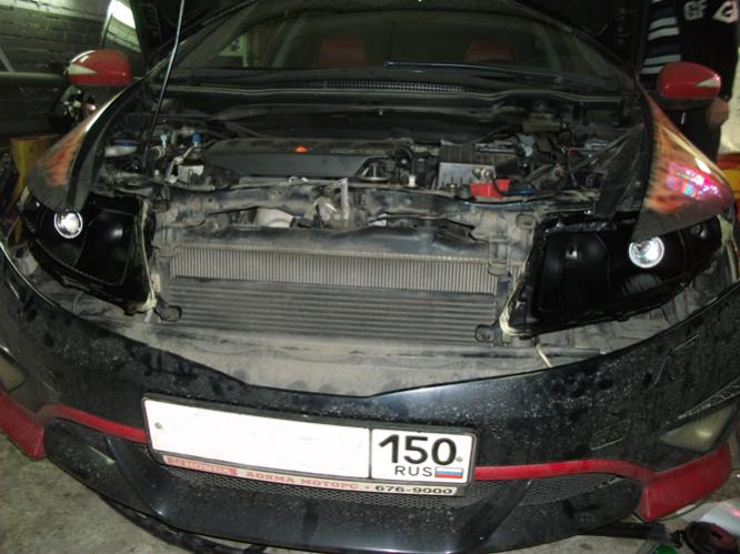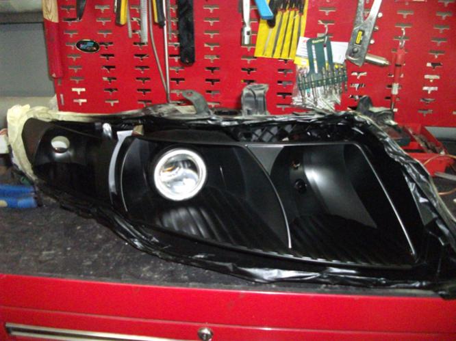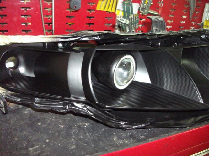 Биксеноновые модули поставлены на свои места, теперь, до вклейки стекол, нужно вернуть фары на автомобиль, проложить всю необходимую проводку и произвести пробный запуск.