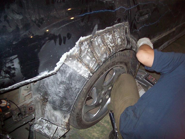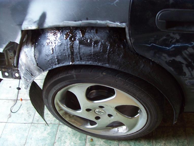 Сначала брызговик вытащил наружу, обработал промазал герметиком( пока доступ есть), затем закрыл облицовку, отбортовку(подворот) не делал ибо это лишний сантиметр(некрасиво).
