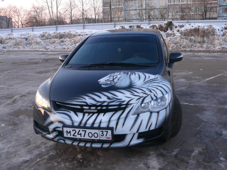 Это снежный барс))) а ноги на фотки не нужны) он лежит спиной, видно только мпину и хвост))) кроме аэрографии много еще чего поставил, сейчас буду фотки скидывать!