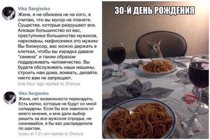 - Ой, вчера праздник был... напилась, ничего не помню. У меня наверное и мужчина вчера был...