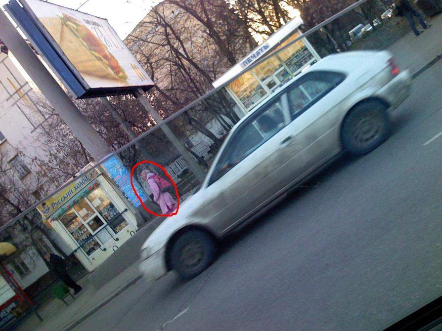 Странная девушка в розовом, переходила пешеходный переход...вела себя неадекватно. Сразу привлекла мое внимание. Люблю неординарных людей.
